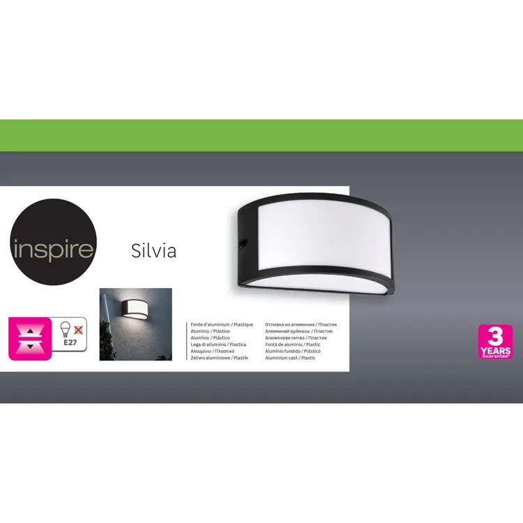 CH-82658784-LUM – Applique E27, aluminium / polycarbonate, noir, Silvia, INSPIRE