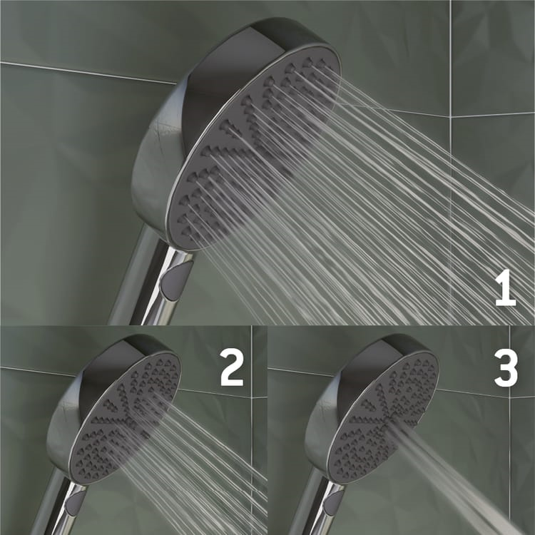 Consommation d’eau de la douchette en mode pluie à 3 bars : en 8.6 l / min