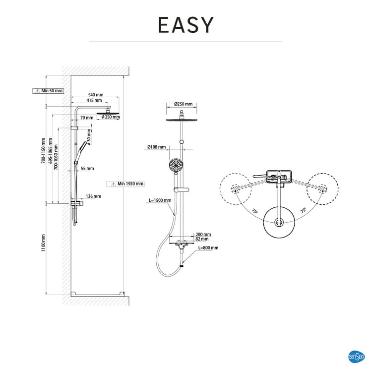 CH-84583554-SAN – EASY FULL SYSTEM W/O FAUCET ACS SENSEA BLACK