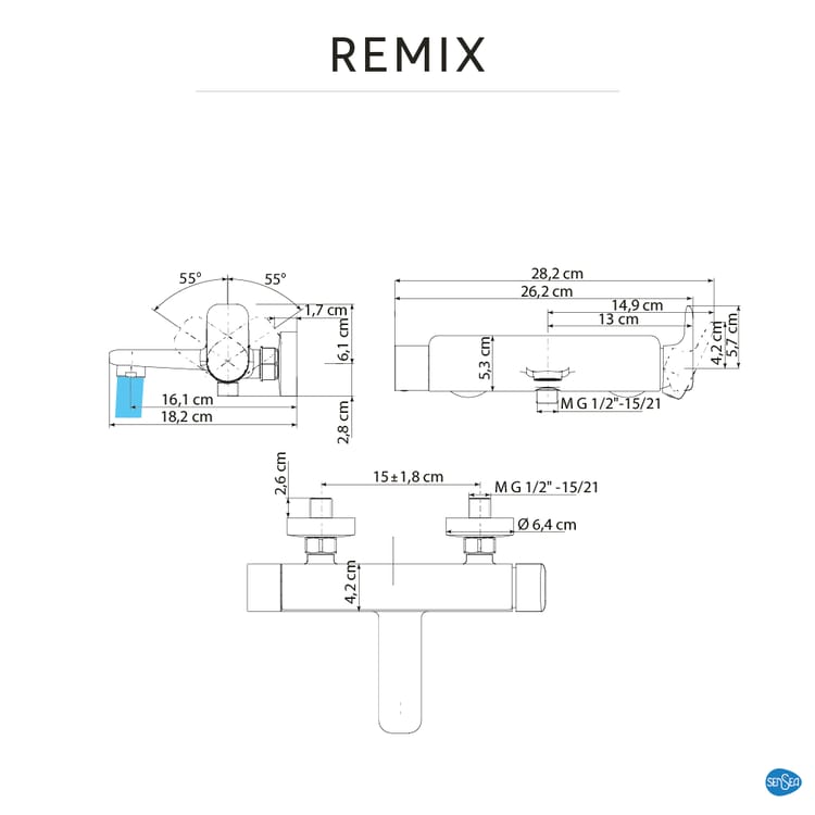 CH-88737186-SAN – Mitigeur de bain mécanique chrome, Remix, SENSEA