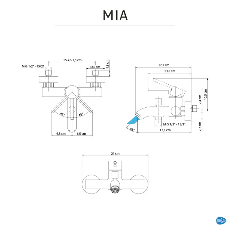 CH-88737194-SAN – Mitigeur mécanique de baignoire chromé, SENSEA Mia chrome