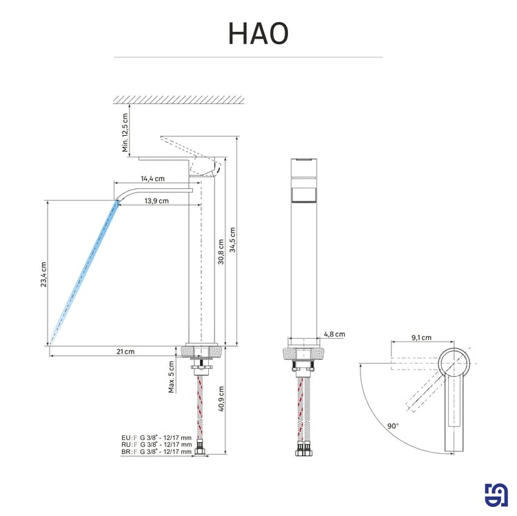 CH-88737205-SAN – Mitigeur de lavabo noir brossé XL, Hao, SENSEA